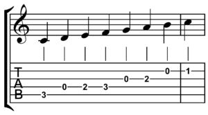 1. Teach both standard notation AND tablature – as you can see from this example: teaching TAB and notation side by side could give a beginning player a leg up! Your students won’t have to find the frets for the notes; TAB takes care of that.
